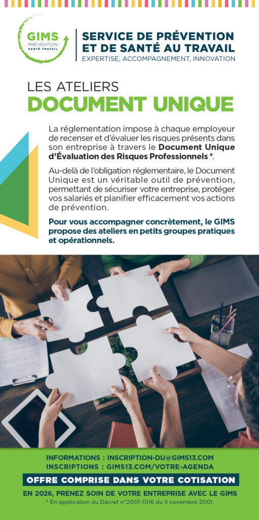 Parce que les TPE et les PME ont besoin d’un message clair, adapté à leurs besoins spécifiques, le GIMS propose des actions d’information comprises dans la cotisation. La participation est inscrite dans le « dossier adhérent », preuve de l’engagement du dirigeant dans une démarche de prévention rendue obligatoire par le Ministère du travail.